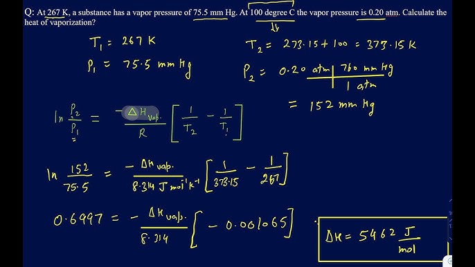 Using The Clausius Clapeyron Equation To Calculate Vapor Pressure Youtube